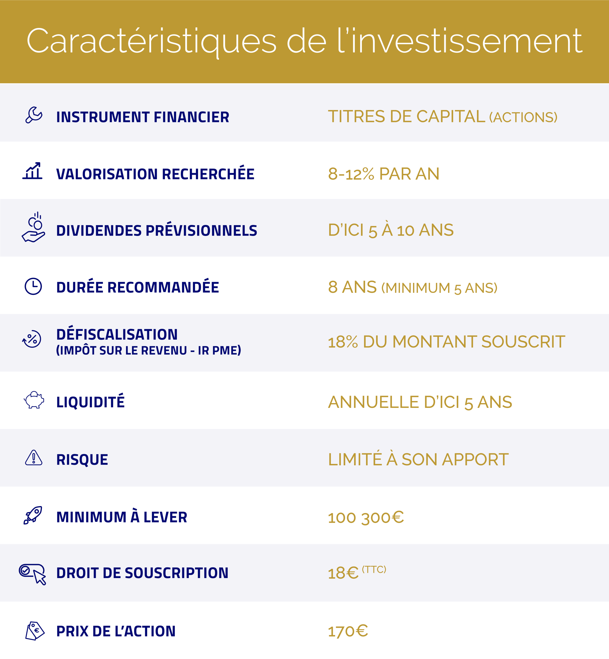 Dans le cadre de cette levée de fonds, nous vous proposons de devenir actionnaire de la société OClocher (par l'intermédiaire d'une société holding - OClocher Partners). Ce financement d'un montant cible de 501 500 € (avec un maximum à lever de 750 040 €) servira à enrichir l'offre OClocher au service des paroisses et des paroissiens et renforcera sa diffusion commerciale.