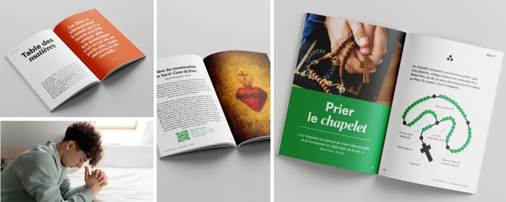Ce livret est pensé pour être donné, partagé et utilisé en paroisse, en aumônerie, en retraite ou en famille, ou encore pour apprendre les prières à ses enfants !