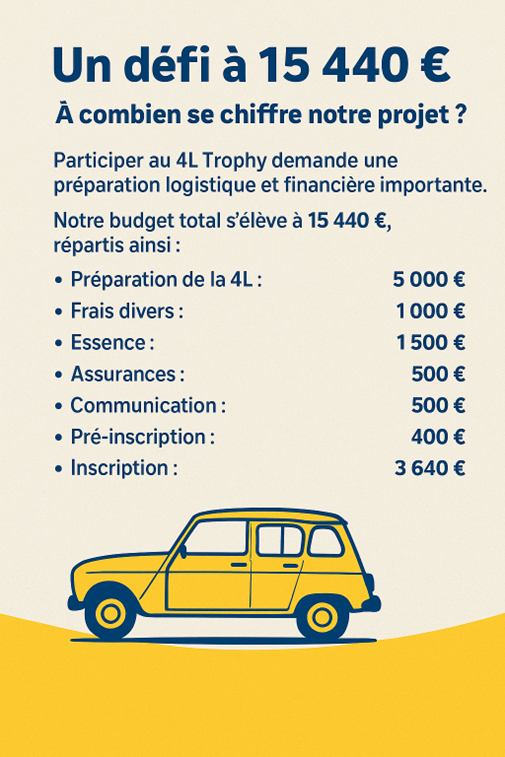 Nous avons à coeur de mener à bien des projets basés sur l'aide aux personnes dans le besoin. Le 4L Trophy en est l'exemple parfait.