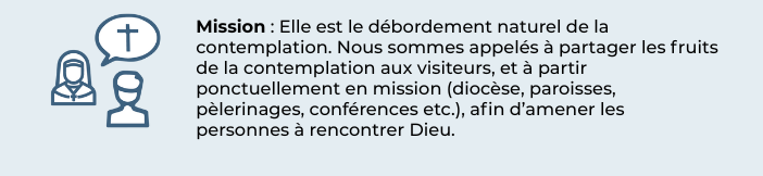 Pour en savoir plus sur la communauté, rendez-vous sur notre site : https://www.carmel-vierge-missionnaire.net/