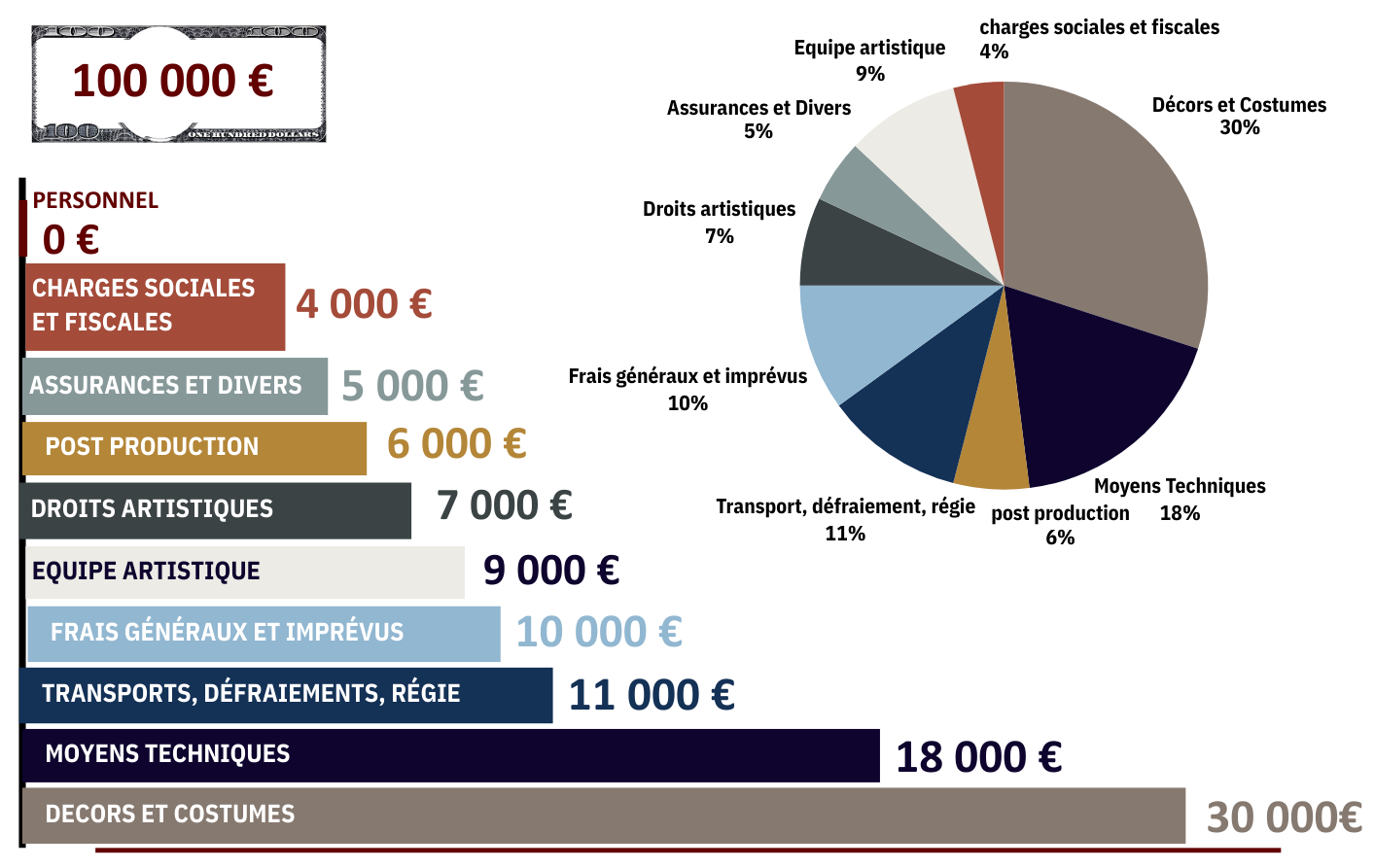 Cachets, costumes, décors, déplacements, logistique, matériel technique, post-production…