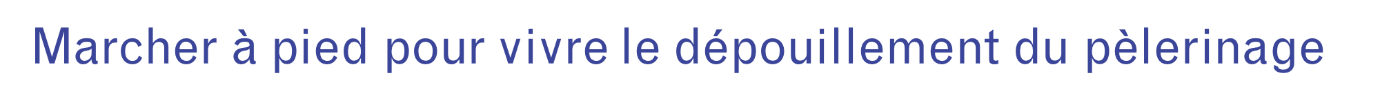 La marche permet des pauses fréquentes, parfois méditatives, en solitude ou en groupe. Elle est un effort d'endurance pour tous. Elle se pratique sur des sentiers de randonnée, à l'écart des grandes routes. Plus lente, la marche est « hors du temps », sur le temps de son corps. Le pèlerinage, c’est aussi ressentir ce sentiment de marcher sur le pas des autres. Cette dimension historique n’est pas possible quand on voyage en vélo, sur le bitume. La marche ne nécessite pas de matériel trop imposant ; elle se vit dans la simplicité et l'abandon.