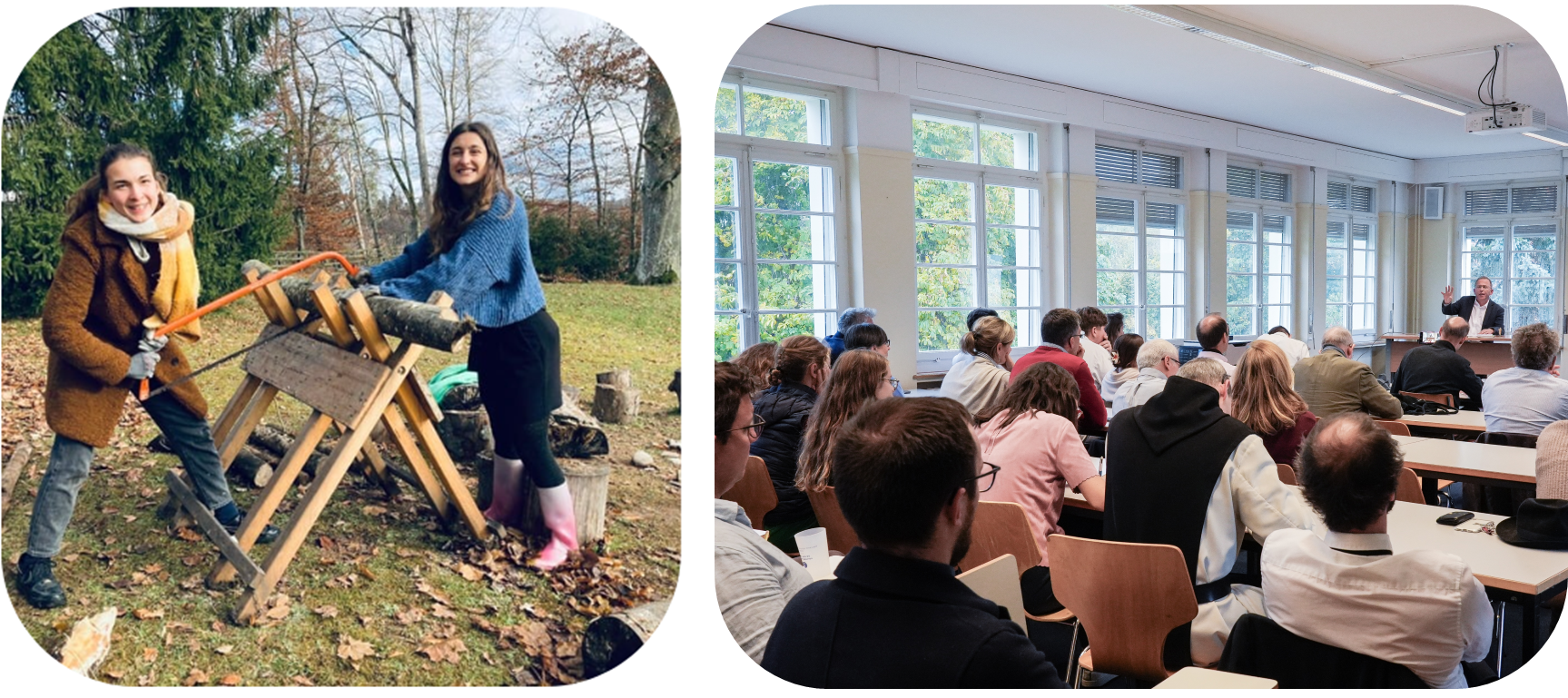 Philanthropos, c’est plus qu’un centre de formation. C’est un lieu de vie, de réflexion et de transformation, niché dans un petit coin de paradis en Suisse. Les étudiants y vivent dans une bâtisse chargée d’histoire : un ancien couvent de religieuses, à la fois simple et beau, propice au silence, à l’étude, à la prière et à la vie fraternelle.