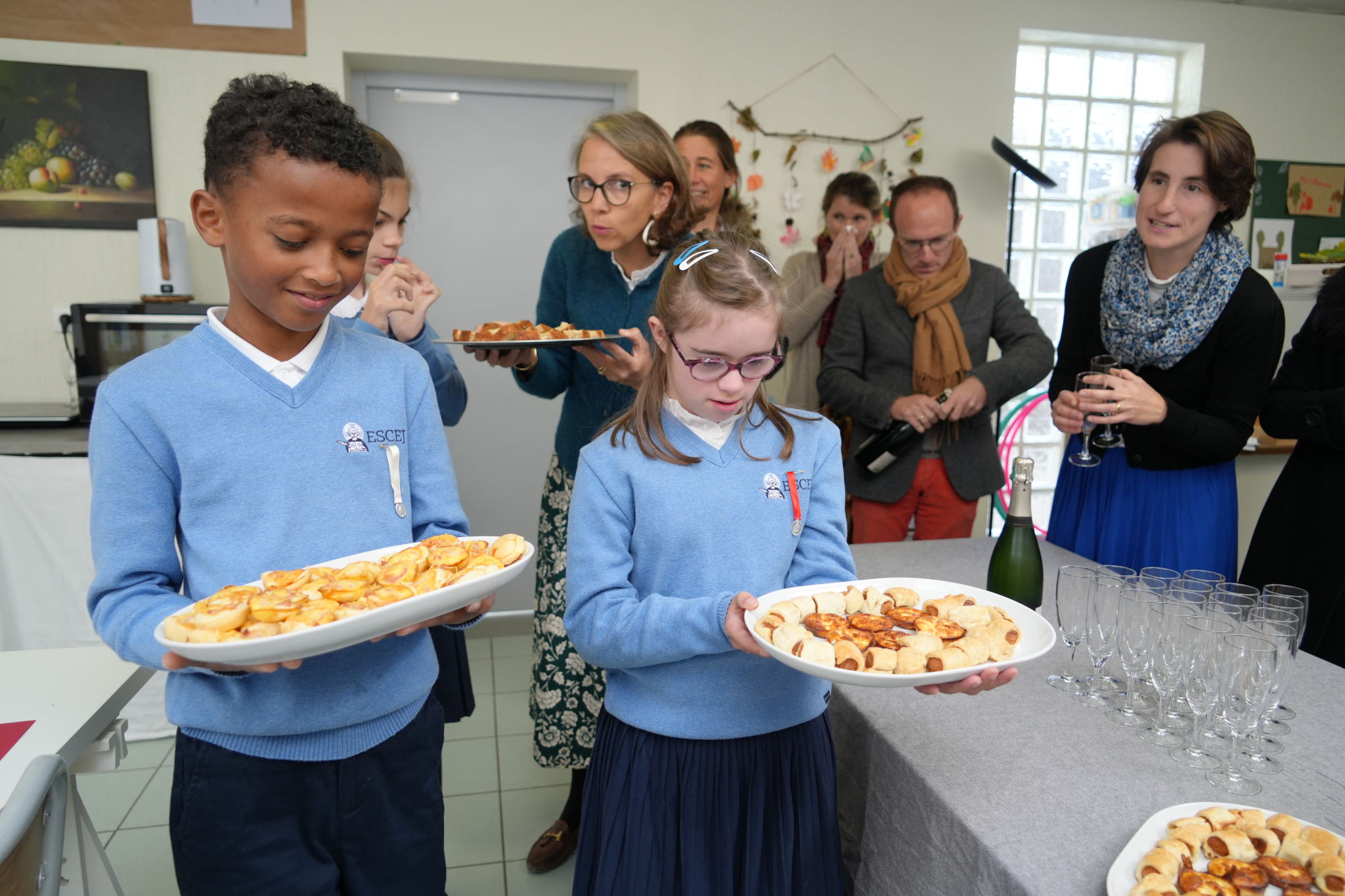 Le moment tant attendu par les élèves arrive enfin : Louise, Lisa et Christy vont offrir aux invités les délicieuses bouchées apéritives préparées avec talent la veille dans leur classe, et leur remettre un ravissant marque-pages automnal réalisé par leurs soins également.