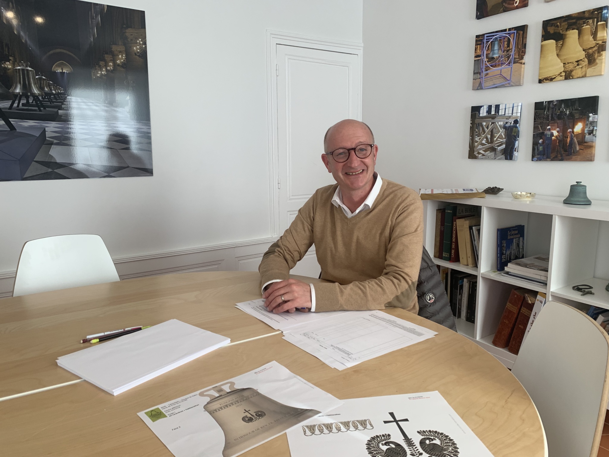 L'échange avec le directeur de la fonderie, M. Paul Bergamo, a permis de soulever les derniers points de détails avant de lancer la réalisation du moule de la cloche, première étape avant la fonte.