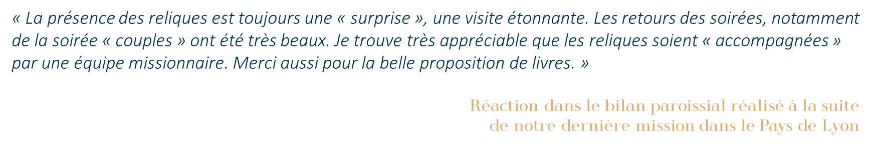 Chaque année, le Sanctuaire d’Alençon organise plusieurs missions dans les paroisses et les diocèses qui le sollicitent. Une délégation du sanctuaire accompagne les reliquaires, notamment le grand reliquaire des saints Louis et Zélie Martin.