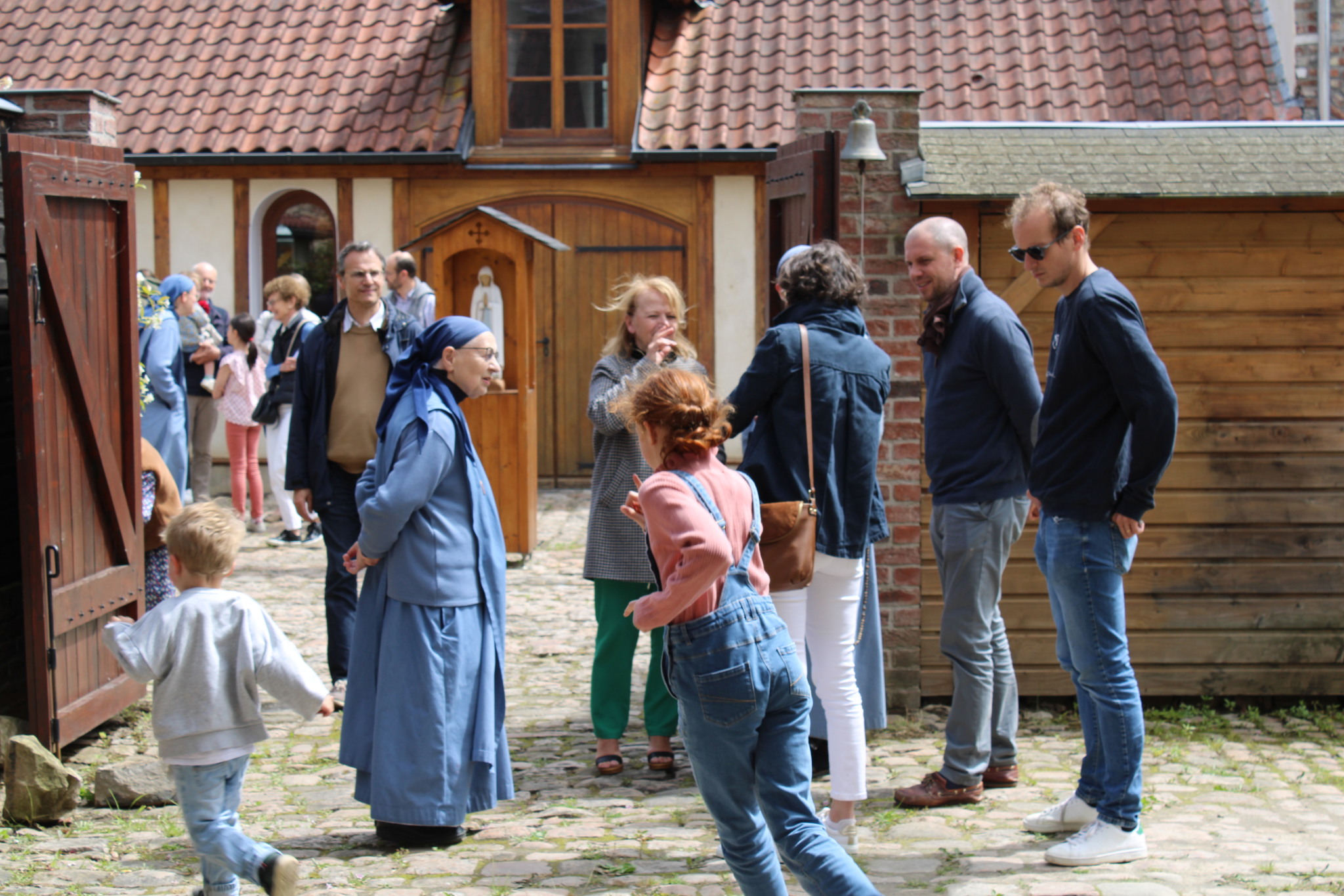 Plusieurs personnes viennent prier chaque jour avec nous, ou viennent nous rencontrer, nous apporter de la nourriture, nous confier une intention de prière. Le week-end, l'affluence grandit et de nombreuses personnes viennent boire à la source de la liturgie : l'eucharistie. Petits et grands se serrent sur les bancs espérant qu'il y ait un jour davantage de places.
